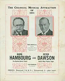 Cover of the program for Dawson's 1931 concert in Adelaide with pianist Mark Hambourg