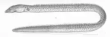 The Marble-toothed snake-eel (Pisodonophis daspilotus, also known as the Blunt-toothed snake eel[2]) is an eel in the family Ophichthidae (worm/snake eels).[3] It was described by Charles Henry Gilbert in 1898.[4] It is a marine, tropical eel which is known from the eastern central and southeastern Pacific Ocean, including Costa Rica, Colombia, Panama and Ecuador.[5] It dwells in shallow waters at a maximum depth of 10 metres (33 ft), and inhabits sand and mud sediments and mangroves. Males can reach a maximum total length of 68 centimetres (27 in).[3]
