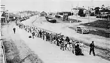 Procession for Bowling Carnival circa 1938, led by Mr H. Christie and the two Carnival Queens, D. Chapman and D. Murphy