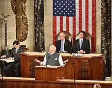 In June 2019, Biden's presidential campaign unveiled a $1.7 trillion climate policy plan aiming to eliminate U.S. net greenhouse gas emissions by 2050. The proposal incorporated elements of the Green New Deal proposal but lacked many key aspects, such as less funding, no healthcare expansion, no guaranteed jobs or benefits, less guaranteed housing, and no bans on fracking.[171] Biden's plan would eliminate fossil fuel subsidies; halt issuance of new permits for oil and gas extraction on public land and water; step up Clean Air Act enforcement; strengthen fuel economy standards to promote a shift to electric vehicles; regulate methane pollution; and create "aggressive" energy efficiency standards for appliances and buildings.[172] Biden also promised that he would re-enter the Paris Agreement (from which Trump pulled the U.S.) on his first day in the White House and called for "a major diplomatic push to raise the ambitions of countries' climate targets."[172] To pressure countries failing to meet their climate obligations, Biden also called for "carbon adjustment fees" to be levied on goods imported from countries that failed to meet emissions targets.[172] The plan also won considerable support from the fossil fuel industry.[173]