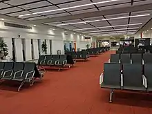 The airport features a single terminal that caters for both domestic and international flights. The terminal building contains a check-in hall, a common baggage claim hall, a large retail area with food and retail outlets as well as waiting areas located on the ground floor. The upper level contains a security area and a departure concourse with a VIP Lounge and five gates, one of which has a jetbridge.[4] The terminal can accommodate up to 300 people.