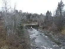 Pozer river and old dam seen from the bridge on route 271 upstream.