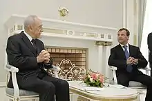 Peres with Russian President Dmitry Medvedev in Moscow, 18 August 2009