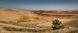 Red Canyon is a canyon located in Fremont County, Wyoming in the United States of America. The uplift of the nearby Wind River Range 60 million years ago exposed sedimentary rocks that were eroded by streams. The canyon exposes a number of geologic formations including the Phosphoria Formation from the Permian Period and the Chugwater Formation from the Triassic Period. Oxidized iron deposits in the rocks give the canyon its name.[1] Red Canyon Creek drains the canyon and feeds into the Little Popo Agie River at the northern end. The streams provide habitat for wildlife in an otherwise arid region.