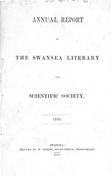 - The Annual Report of the Swansea Literary and Scientific Society: an annual magazine first published by 'Swansea Literary and Scientific Society' in 1850. In addition to reports on the society's activities it contained articles on scientific subjects, history, and antiquarianism.[28]