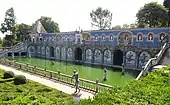 - Fountain of Laranjeiras (Chafariz das Laranjeiras), located on the posterior of a building in front of the palace, it was built as part of the Águas Livres water supply project for Lisbon, and consists of rectangular facade, flanked by vertical square pillars, decorated with cornices and friezes.[5]