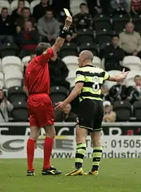 The following month, Aberdeen's Sam Cosgrove was sent off for a reckless tackle on Brown, to which he reacted by jumping to his feet and 'strutting' towards the crowd while laughing to demonstrate his toughness.[191] Before the end of the campaign, Brown received two foul challenges in which the perpetrator appeared to deliberately stamp on his groin area: Andrew Davies of Ross County was ordered off at the time, with Brown stating "I didn't want more kids anyway" but later adding that "Stamping on opponents when the ball is nowhere near you is definitely not being a hard man or going into a hard tackle";[192] the referee took no action against Steven Naismith of Hearts at the time,[193] but the Scotland forward was later banned by the SFA. On the latter incident, Brown commented "I think they try to wind me up and get me sent off but let's be honest, I am past that stage and have matured eventually. So it is not going to work."[194]