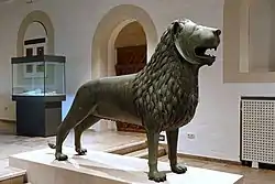 The conquest of the whole of Mesopotamia and much surrounding territory by the Assyrians created a larger and wealthier state than the region had known before, and very grandiose art in palaces and public places, no doubt partly intended to match the splendour of the art of the neighbouring Egyptian empire. Unlike earlier states, the Assyrians could use easily carved stone from northern Iraq, and did so in great quantity. The Assyrians developed a style of extremely large schemes of very finely detailed narrative low reliefs in stone for palaces, with scenes of war or hunting; the British Museum has an outstanding collection, including the Lion Hunt of Ashurbanipal and the Lachish reliefs showing a campaign. They produced very little sculpture in the round, except for colossal guardian figures of the human-headed lamassu, which are sculpted in high relief on two sides of a rectangular block, with the heads effectively in the round (and also five legs, so that both views seem complete). Even before dominating the region they had continued the cylinder seal tradition with designs which are often exceptionally energetic and refined.[36]