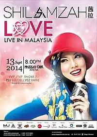 Shila Amzah Love Live in Malaysia (or: 茜拉爱住在马来西亚的演唱会) was a single day concert by Malaysian singer-songwriter, Shila Amzah.[1][2] The concert was jointly organized by Shila Amzah Entertainment Bhd., Mega Ultimate Sdn Bhd., AirAsia, Alexandre Christieas, My FM, Era FM, Paradigm Mall and Premiere Hotel. It received positive feedback and reviews from concert reviewers and critics who praised Shila's vocals and overall showmanship.