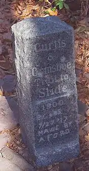 It is named in memory of William Buckingham Curtis and Allan Ormsbee, two hikers from New York who died in a sudden snowstorm in the Presidential Range of New Hampshire's White Mountains on June 30, 1900. They had laid the trail out, and a small monument to them is located at the trail's southern end, where it leaves the Phoenicia-East Branch Trail 0.8 miles (1.3 km) south of the Burroughs Range Trail junction, in the col between Slide and neighboring Wildcat Mountain.