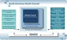 Created by UNASUR's Council of Heads of State and of Government as proposed by the South American Council of Health, gathered in Cuenca, Ecuador in April 2010, ISAGS operations are based on the Triennial Work Plan 2012–2015,[2] which is itself a result of the priorities defined by the Quinquennial Plan 2010-2015 of the South American Council of Health.[3]