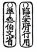 | Lin'an Fu Xing Yong (臨安府行用)[21] | Zhun Er Bai Wen Sheng (準貳佰文省) | "(For) use in Lin'An Prefecture." "Equal to 200 cash coins reduced." | Bronze | 17.903, 17.904 | |