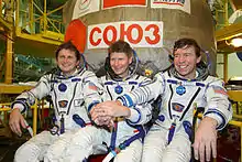 From left to right: Charles Simonyi, Gennadi Padalka, Michael Barratt