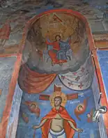 The fresco painting is the work of Avram Dičov, the eldest son of Dičo Zograf from the village of Tresonče, and it was worked on at the same time to be finished in 1879. The church with imposing dimensions, built with imagination and richly painted, is one of the most beautiful Macedonian revival monuments in Macedonia.[2]