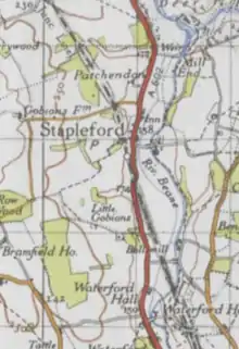 Stapleford is a village and civil parish of 134 acres (54 ha) on the A119 road, in the East Hertfordshire district, in the county of Hertfordshire, England. Stapleford is located between Waterford and Watton-at-Stone in the Beane valley; the little river was forded at this point, giving rise to the village. Stapleford's parish church is St Mary's Church.[1] Beane is a hamlet of Stapleford.
