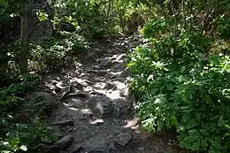 Below the hill there is a popular beach for swimming. Close to the top are the remains of a ruin of a 5th- or 6th-century fortress.