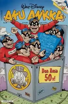 "The Beagle Boys vs. the Money Bin" is a 2001 Donald Duck comic by Don Rosa. Rosa's inspiration for it was mostly to get a chance to thoroughly demonstrate the Money Bin, invented by Carl Barks.