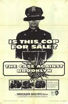 The Case Against Brooklyn is a 1958 film noir crime film directed by Paul Wendkos, starring Darren McGavin and Margaret Hayes,[1] and based on the True Magazine article "I Broke the Brooklyn Graft Scandal" by crime reporter Ed Reid.[2][3] The film features depictions of American police corruption, though no police officer in uniform is shown to be corrupt.