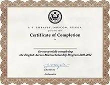 The English Access Microscholarship Program is an international project created by the U.S Department of State which aims to help teens (13–20 years-old) from economically disadvantaged backgrounds gain opportunities in employment, education, and life in general. Access promotes skills and knowledge in the English language, as well as giving students the ability to compete and participate in future exchanges and study in the United States. Approximately 95,000 students in more than 85 countries have participated in the program since its founding in 2004.[1]