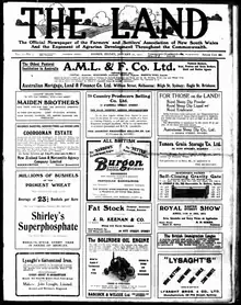 The Land first appeared in 1911 as a two penny broadsheet. It was founded by the Farmers' and Settlers' Association of New South Wales[1] after losing their weekly Farmer and Settler. It was later published by Rural Press, which merged with Fairfax Media.[2]