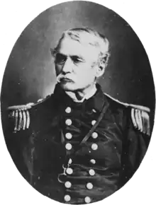 Though born and raised in Virginia and a first cousin once removed of Robert E. Lee,[5] Turner remained loyal to the Union during the Civil War. He was promoted to captain on 16 July 1862[3] and then to commodore on 13 December 1862.[4][6] Turner was given command of the armored frigate USS New Ironsides and commended by Rear Adm. Samuel F. Du Pont for his actions during the First Battle of Charleston Harbor in April 1863.[3][4] He was assigned to special duty at New York City in 1864 and then at Philadelphia in 1866.[3][7]
