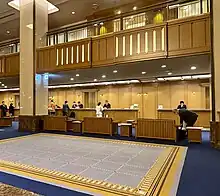 The Imperial Hotel (帝国ホテル, teikoku hoteru) is a hotel in Uchisaiwaicho, Chiyoda ward, Tokyo. It was created in the late 1880s at the request of the Japanese aristocracy to cater to the increasing number of Western visitors to Japan. The hotel site is located just south of the Imperial Palace grounds, next to the previous location of the Palace moat.[1] The modern hotel overlooks the Palace, the 40-acre (16 ha) Western-style Hibiya Park, and the Yurakucho and Ginza neighborhoods.[1]