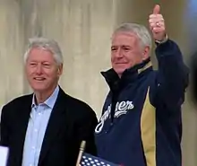 As a U.S. Representative, Barrett worked with his colleagues to secure aid for flood remediation projects in his district. He also worked to modernize the Community Reinvestment Act and frequently voiced his support of Milwaukee's Midwest Express Airlines.[14] Barrett sponsored 37 bills and co-sponsored 1345 bills between January 5, 1993, and October 10, 2002.[15] He was a delegate to the 2000 Democratic National Convention from Wisconsin.[16]