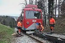 Simple repairs may be done while a train is parked on the tracks, but more extensive repairs will be done at a motive power depot.[40] Similar facilities exist for repairing damaged or defective train cars.[41] Maintenance of way trains are used to build and repair railroad tracks and other equipment.[42]