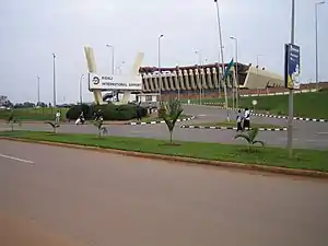 The country's main aviation hub is Kigali International Airport, which is located at Kanombe, a suburb approximately 10 km (6 mi) from Kigali city centre. The airport has international flights to: Lagos, Brazzaville, Dubai, Nairobi, Entebbe, Addis Ababa, Bujumbura, Johannesburg, Amsterdam, Brussels and Doha and is the main airport for the national carrier RwandAir.
