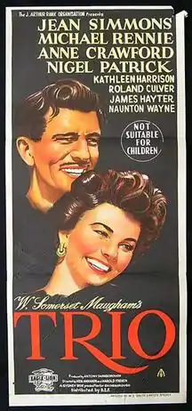 - ↑ Crowther, Bosley (11 October 1950). "The Screen in Review; 'Trio', Based on Old Stories by Somerset Maugham, Opens at the Sutton Theatre". The New York Times. Retrieved 12 March 2014.