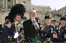 ![]() Pipers of the Band of the Air Force Reserve Pipe Band, pictured with Sean Connery, in 2001. | |