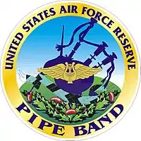 The Band of the Air Force Reserve Pipe Band, a highland unit of the United States Air Force Reserve, was activated in 1970 and operated as a subordinate unit of the Band of the Air Force Reserve.[1][5] In September 2013 the Band of the Air Force Reserve, and with it the Band of the Air Force Reserve Pipe Band, was deactivated.[6] Following deactivation, a single piper was transferred to the United States Air Force Band as the service's sole remaining musician of this type.[7]