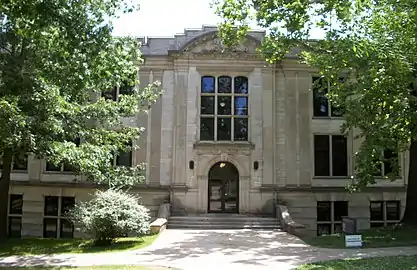 The Chemistry Building was built in 1906 as the original chemistry building on campus. A small, three-story brick building in the Spanish architecture style, it was outgrown and replaced by the new Chemistry Building in 1935. Today this building serves as the School of Social Work.[19]