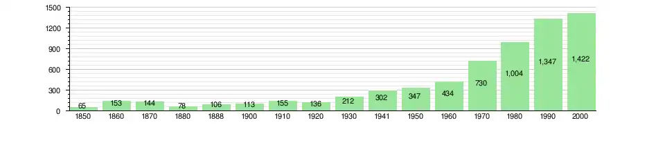 As of 2000, there were 568 private households in the municipality, and an average of 2.4 persons per household.[7] There were 164 households that consist of only one person and 49 households with five or more people. In 2000, a total of 537 apartments (89.4% of the total) were permanently occupied, while 49 apartments (8.2%) were seasonally occupied and 15 apartments (2.5%) were empty.[10] As of 2009, the construction rate of new housing units was 5.2 new units per 1000 residents.[7] The vacancy rate for the municipality, in 2010, was 0.72%.[7]