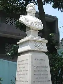 Vicente Nicolau de Mesquita (July 9, 1818 in São Lourenço, Portuguese Macau – March 20, 1880 in São Lourenço, Portuguese Macau) was an officer of the Portuguese Army in Macau. He is widely remembered for his role at the Portuguese attack of Baishaling,[1][2] in 1849. He was the oldest of the five children of noted Macanese lawyer, Frederico Albino de Mesquita and Clara Esmeralda Carneiro - both Macau natives. He married twice; first to Balbina Maria da Silveira; second to his sister-in-law Carolina Maria Josefa da Silveira.