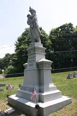 Erected in 1909 and dedicated on September 16, 1909, the Vigilant Fire Company Fireman's Monument is a 16-foot-high granite monument on a concrete base, which is situated on a plot of land chosen by the fire company for its visibility from the highway. Crafted by local stone mason Frank Scheirer at a cost of $2,200, the monument incorporates a 7-foot-tall statue of an early 20th-century fireman with a handlebar mustache, pointed fire hat, fire coat, and boots, holding a young girl in both arms.