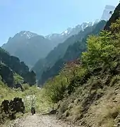The Vikos Gorge has been carved over millions of years by the Voidomatis river, a tributary of the Aoös. The Voidomatis is mostly seasonal, with year-round flow occurring only in the lower part of the gorge.[9] Due to its nature, the area of the gorge is precipitous and impassable most of the year.[14]