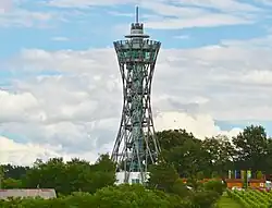 The Vinarium Tower (Slovene: stolp Vinarium, Hungarian: Vinarium torony; Vinarium Lendava, Panonnian Basin Lighthouse, Prekmurje Eiffel Tower) is a Slovenian steel construction 53.5-meter (176 ft) tall observation tower in Dolgovaške Gorice, a village in the middle of the Lendava Hills above Lendava. It stands at 302 meters (991 ft) above sea level near the Hungarian border. The architects are Oskar Virag and Iztok Rajšter from the Vires architectural office . This is the highest observation tower in Slovenia. The tower was officially opened on 2 September 2015. The tower allows views into four different countries: Slovenia, Hungary, Austria, and Croatia. The designers expect 30,000 to 50,000 visitors per year.[1][2]