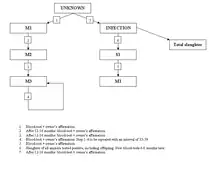 Though it does not produce severe immunodeficiency, visna shares many characteristics with human immunodeficiency virus, including the establishment of persistent infection with chronic active lymphoproliferation;[2] however, visna virus does not infect T-lymphocytes.[7] The relationship of visna and HIV as lentiviruses was first published in 1985 by visna researcher Janice E. Clements and colleagues in the HIV field.[38] It has been postulated that the effects of maedi-visna infection in sheep are the "equivalent" of central nervous system disease and wasting syndrome found in human AIDS patients.[1][39] Despite limited sequence homology with HIV,[1] the genomic organization of visna is very similar, allowing visna infection to be used as an in vivo[40] and in vitro model system for HIV infection.[41][42][43]