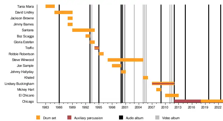 | 2000 | Johnny Hallyday | 100% Johnny – Live a la tour Eiffel | Percussion, drums | [19] |