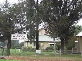 Wamoon is a village in Leeton Shire in the Riverina region of New South Wales, Australia. Wamoon is located 8.8 kilometres (5.5 mi) from Leeton along the Irrigation Way to the Leeton CBD and Henry Lawson Drive to the Leeton suburb of Wattle Hill. Wamoon provides a village of homes to the farmers of northern Leeton and there is a small primary school known as Wamoon Public School.