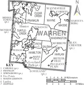Map of Warren County, Ohio with municipal and township labels