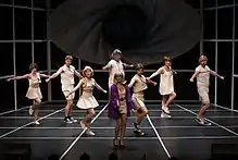 A resident production at the Paris Las Vegas hotel and casino in Las Vegas, Nevada, began previews on 4 August 2004, with an official opening on 8 September.[37] Tony Vincent, who originated the role of Galileo in London, reprised the role, which he alternated with Jason Wooten. Aspen Miller and Kacie Sheik shared the role of Scaramouche, Patti Russo was Killer Queen, and Ty Taylor was Brit.[38] The Las Vegas production "trimmed" down the book into a single act show.[39] The production closed on 27 November 2005.[40]