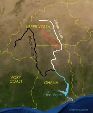 The White Volta or Nakambé is the headstream of the Volta River, Ghana's main waterway.[1][2] The White Volta emerges in northern Burkina Faso, flows through Northern Ghana and empties into Lake Volta in Ghana.[1] The White Volta's main tributaries are the Black Volta and the Red Volta.[1]