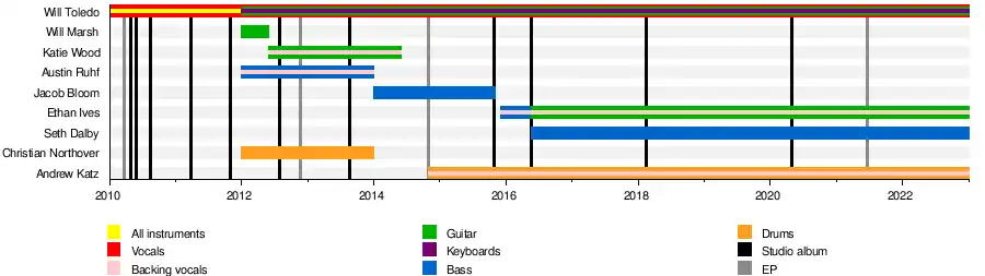 - Will Toledo – vocals, guitar, keyboards (2010–present), drums, bass (2010–2015)
