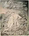 In Blake's mythology, Albion's fall from a divine androgyny to a sexual nature divides him into the Four Zoas, their spectres (representative of hypocritical morality), and their emanations (female halves). In the Paradise Lost illustrations, Adam is analogous to the fallen Albion, Satan to Adam's Spectre, and Eve to Adam's emanation.[3]