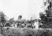 Cowie and party travelling beyond the railway limit in North Borneo.