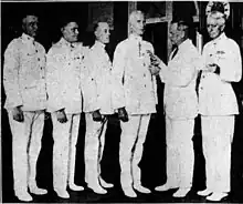 In 1930, Capt. William K. MacNulty (second from far left) and three other U.S. Marine Corps officers are awarded the Navy Cross for their service in the Banana Wars by Ass. Secretary of Navy Ernest Lee Jahncke (second from far right). At far right is Maj. Gen. Ben H. Fuller, Commandant of the Marine Corps.