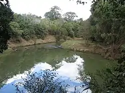 The Wilsons River has several tributaries, including Leycester Creek, Coopers Creek, Pearces Creek and Byron Creek; with Leycester Creek the most downstream major tributary. Additionally, there are numerous other smaller named and unnamed tributaries that join the river. Leycester Creek joins the Wilsons River at Lismore which when in flood at the same time can cause higher than expected flooding at the city. This is particularly caused by the angles of confluence which can direct flow towards the main Lismore Levee. The confluence with Coopers Creek is near the village of Bexhill at Boat Harbour Nature Reserve which is one of the largest remnants of the Big Scrub rainforest. It is also the furthest upstream tidal location on the river. Byron Creek has its headwaters 2 kilometres (1.2 mi) from the Tasman Sea. So, like most of the Wilsons River system it is unusual for a coastal river system because if flows inland for a significant distance.