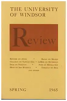 The Windsor Review was founded in January 1965[5] at the University of Windsor in Windsor, Ontario, Canada. It has evolved into an internationally recognized literary and arts focused journal publishing contemporary literary fiction, poetry, creative nonfiction and review essays. The journal was originally modeled on Canadian and American university quarterlies like The Dalhousie Review and The Kenyon Review.[6]